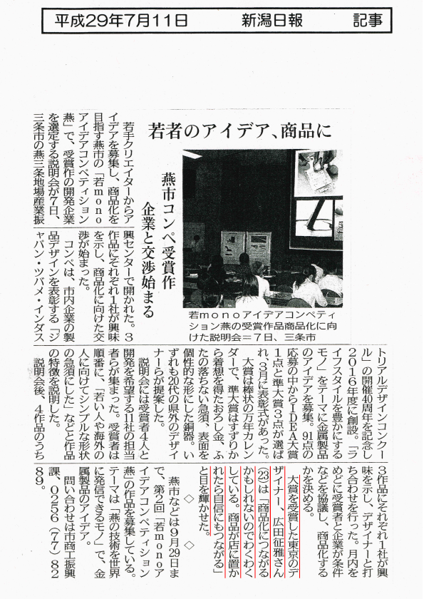 燕市長様公式ブログにて「若monoアイデアコンペティション燕2017」の件を取り上げていただきました。
