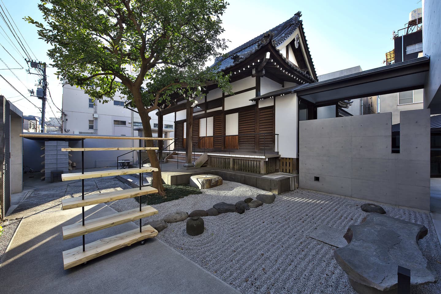 台東区にて長い歴史を誇る寺院様からのご依頼。寺の建て替えに伴い伐採することとなった樹齢100年以上の銀杏の木。その生命力あふれる樹木に敬意を表し、住職や門徒様に寄り添う「木の在り方」を再定義。波打つ木肌を残しつつ仏具や荷物を保管する棚として再生しました。